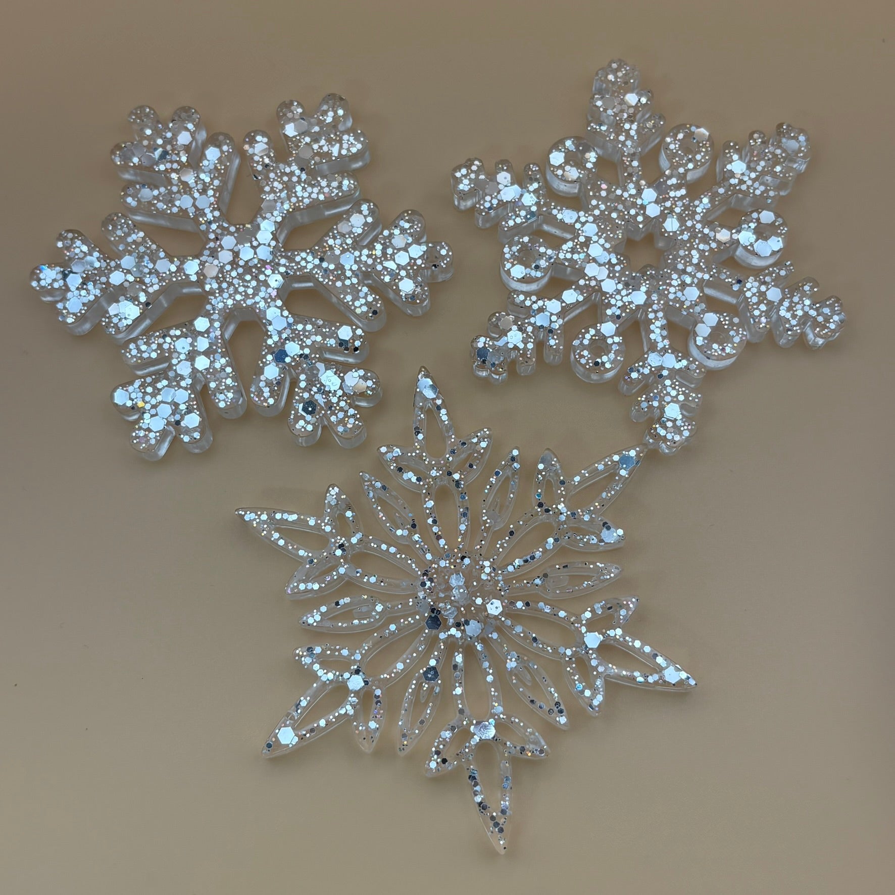 3er-Set Schneeflocken-Anhänger aus Epoxidharz – Handgemachte Winterdeko in verschiedenen Designs