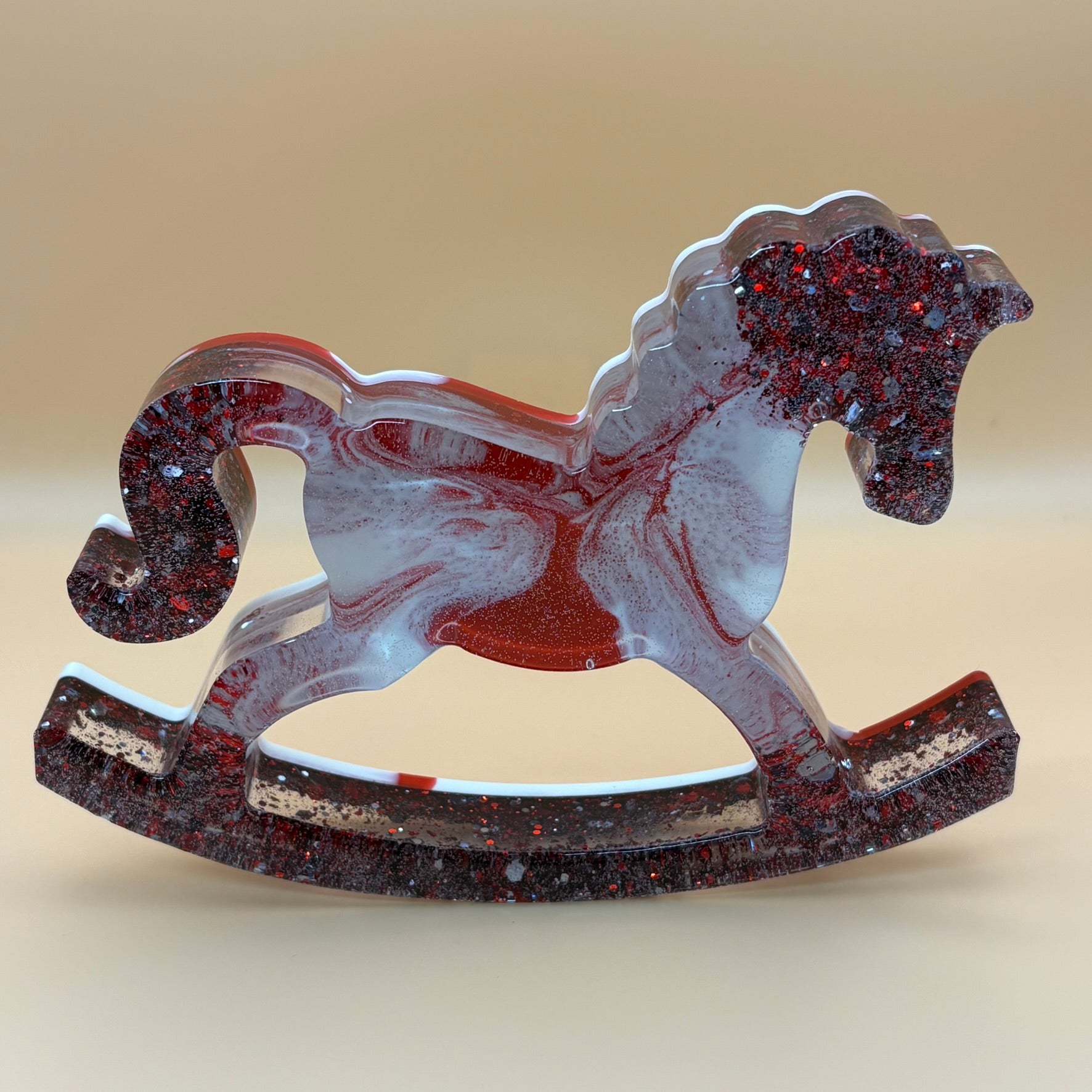 Schaukelpferd-Figur aus Epoxidharz – Nostalgische Weihnachtsdeko handgemacht