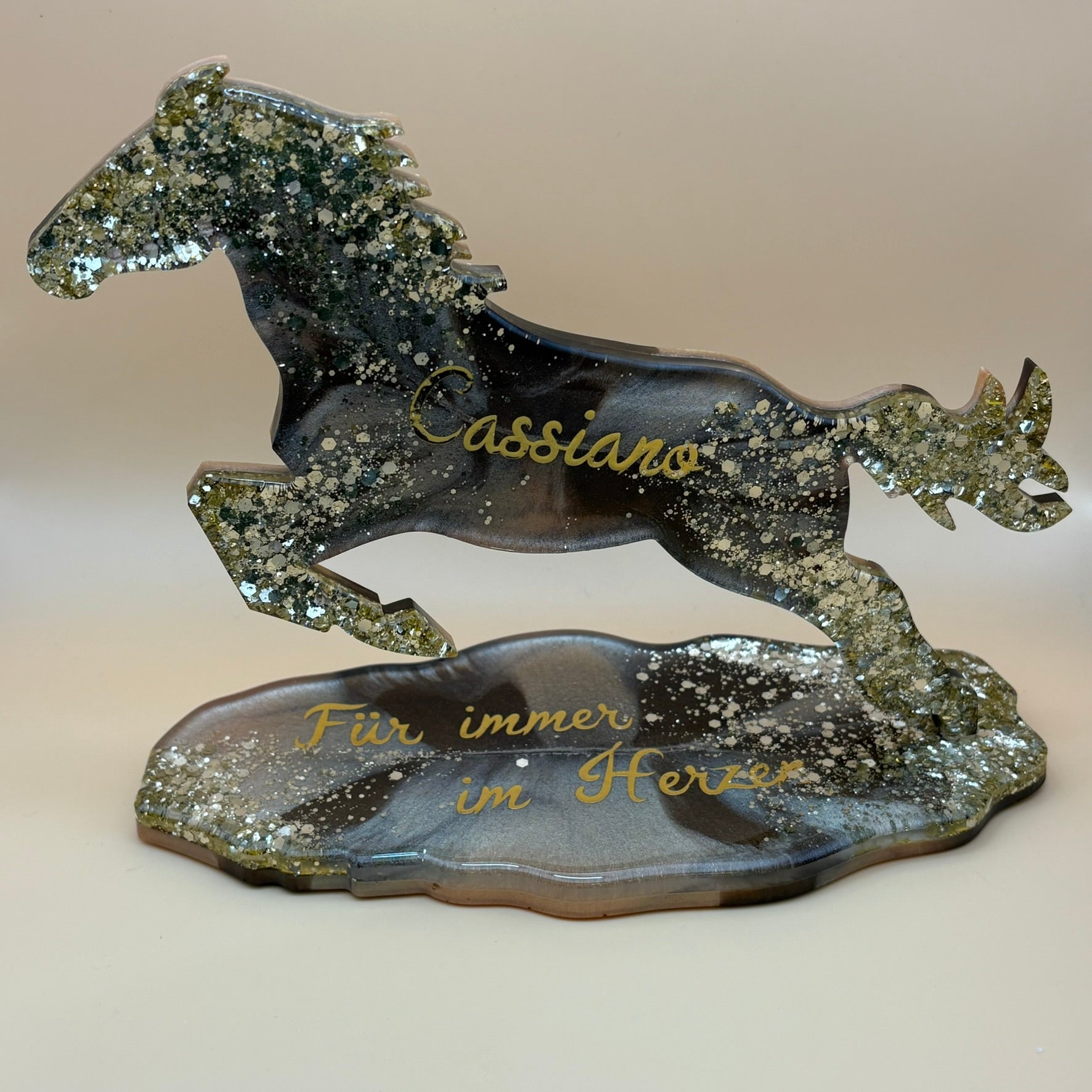 Personalisierbare Pferdefigur mit Sockel – Erinnerungsstück aus Epoxidharz