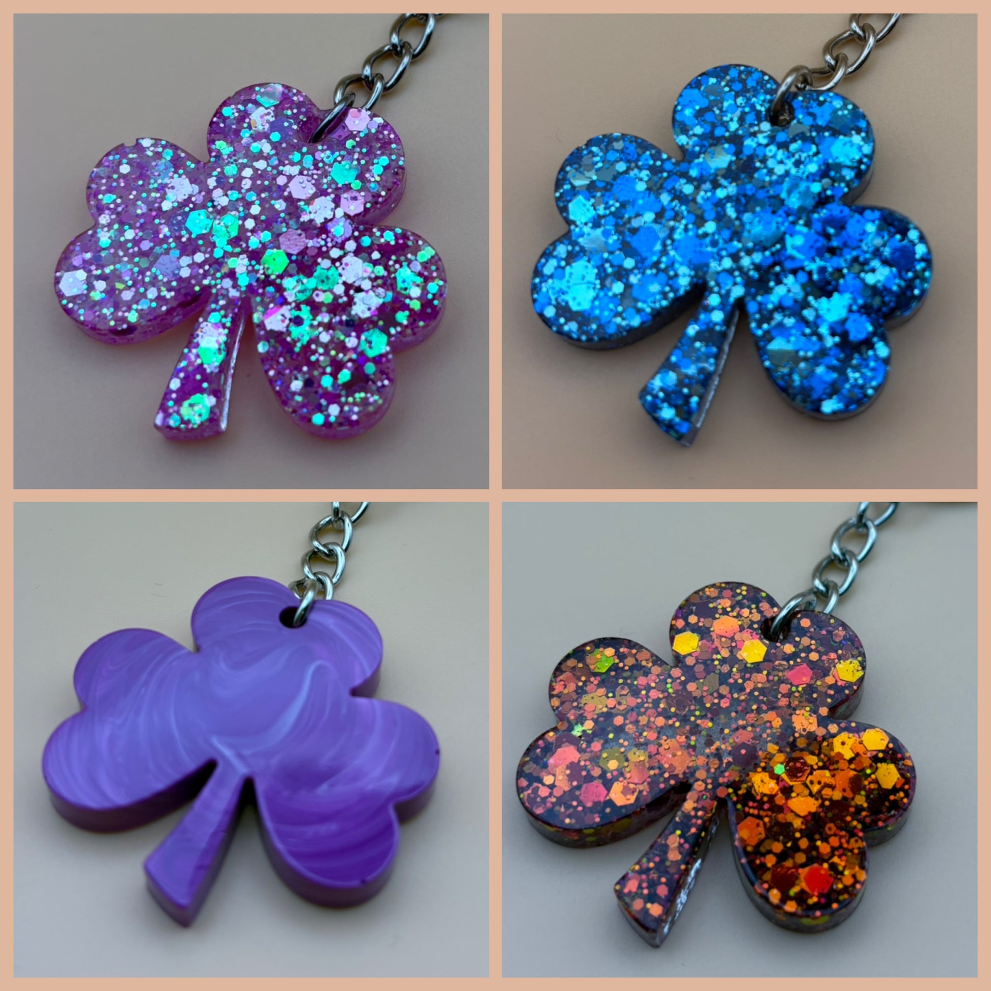 Schlüsselanhänger in Kleeblattform aus Epoxidharz – handgemacht & in vielen Designs