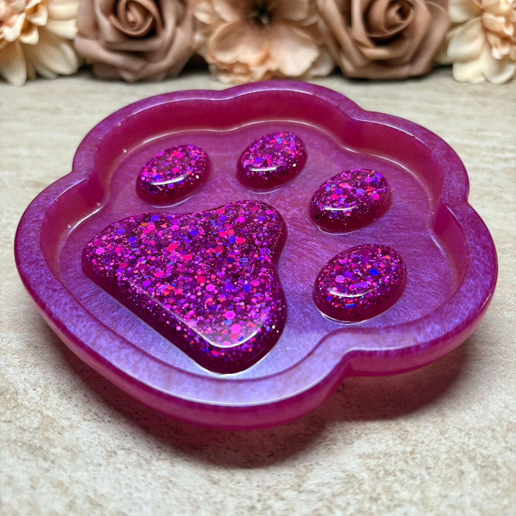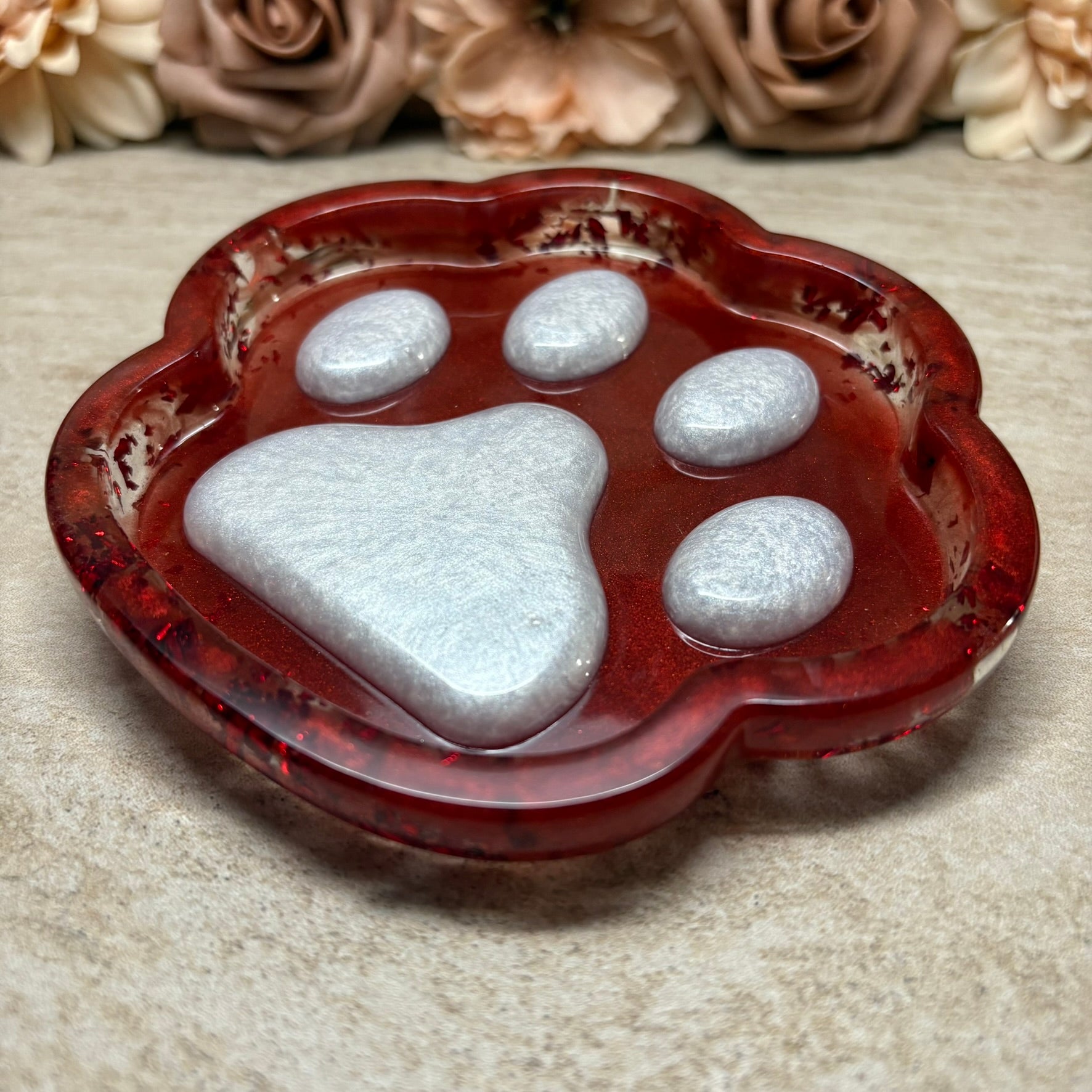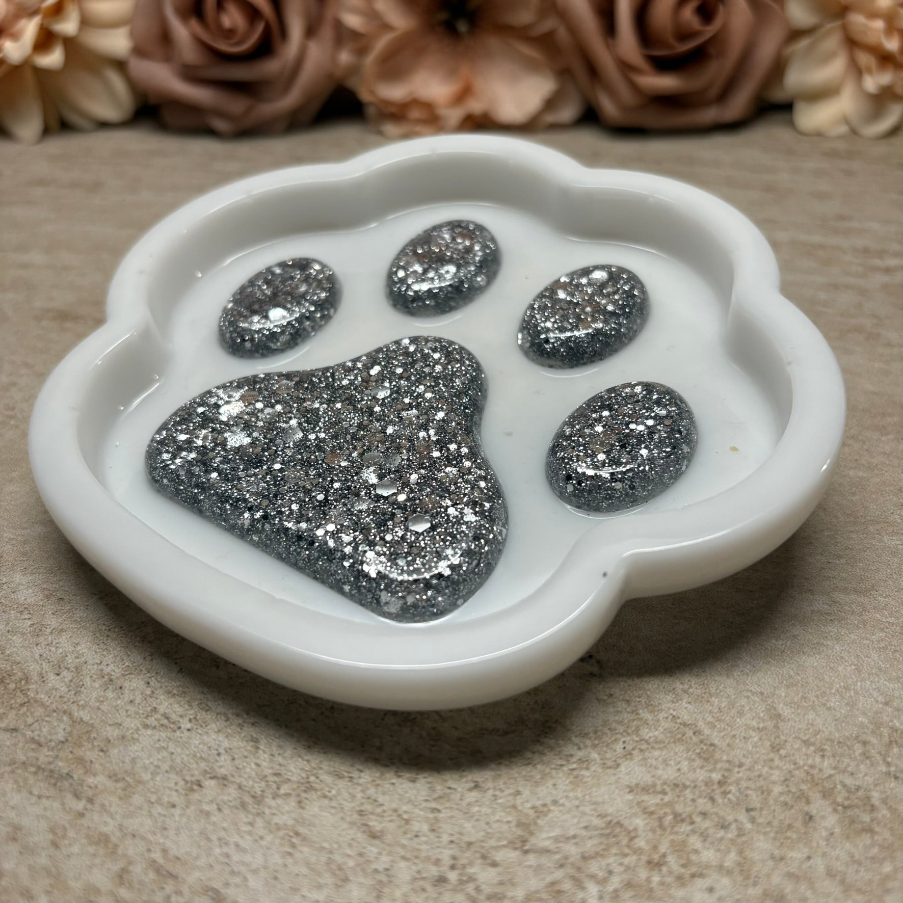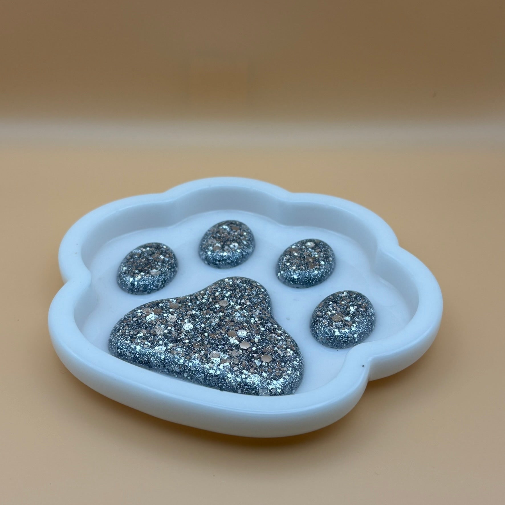 Jedes Tablett ist ein Unikat und verleiht Ihrem Schminktisch oder Nachttisch eine besondere Note. De glatte Oberfläche sorgt für eine elegante Optik, während die Pfotenform ein verspieltes Highlight setzt - ideal auch als Geschenk für Tierfreunde!
